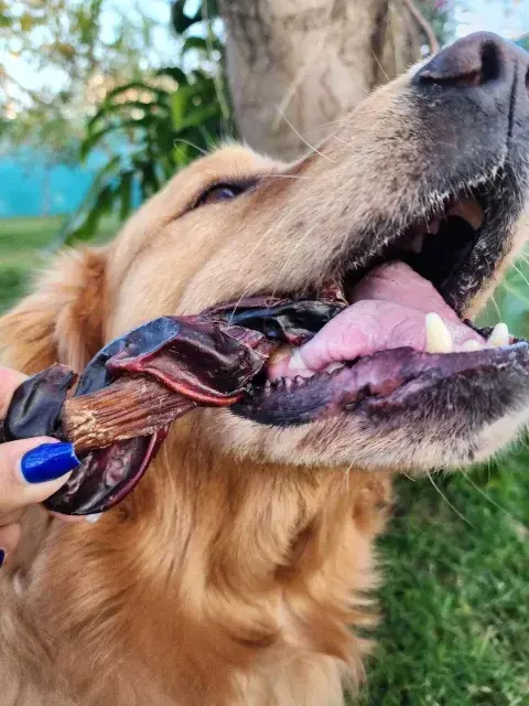 Informações importantes: é um mastigável de origem 100% animal, produzido naturalmente, sem aditivos de químicos, conservantes, palatabilizantes ou corantes. Ou seja, é apenas desidratado lentamente à temperatura controlada para que haja a preservação dos nutrientes, ainda garantindo a segurança alimentar. Por ser um alimento natural e feito artesanalmente, pode sofrer variações de tamanho, cor e gramatura. Recomendamos que qualquer mastigável seja oferecido sob supervisão. Após aberto consumir em até 15 dias.